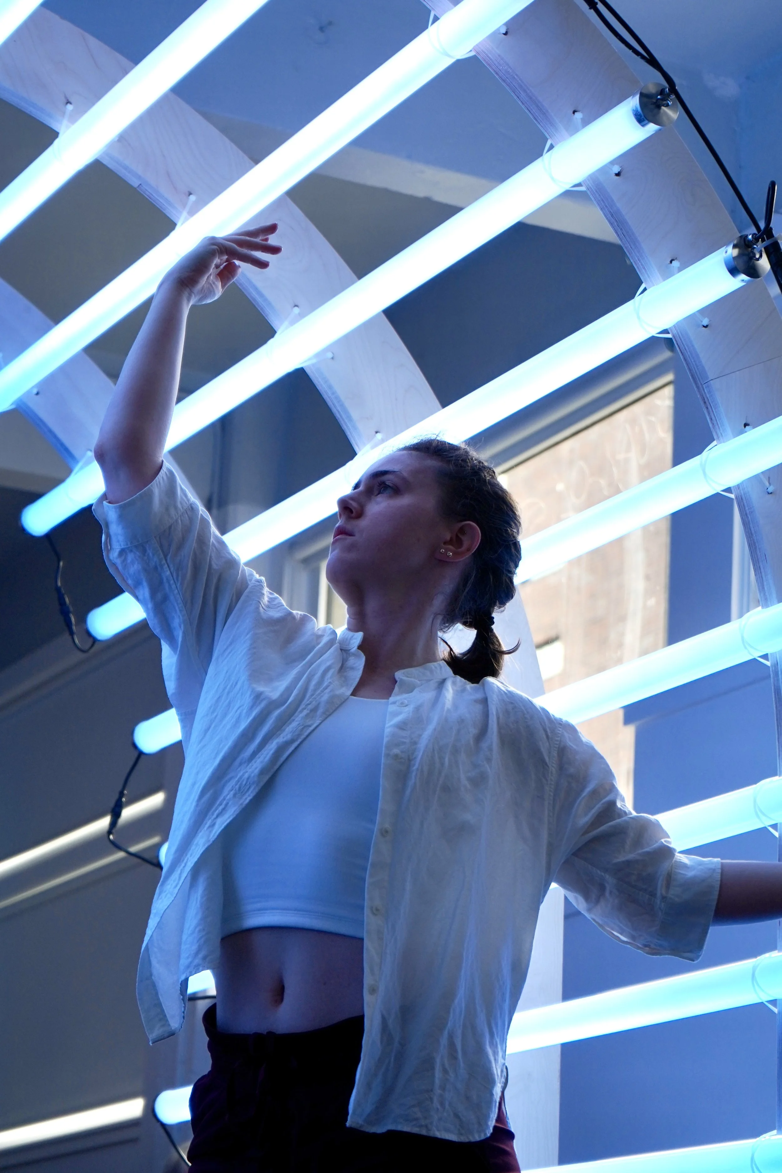 The build relied on intentionally simple materials—zip ties, unstained birch plywood, and concrete pavers, so nothing would distract from the experience. By stripping the architecture down to essentials, the work encouraged viewers to turn their attention inward.