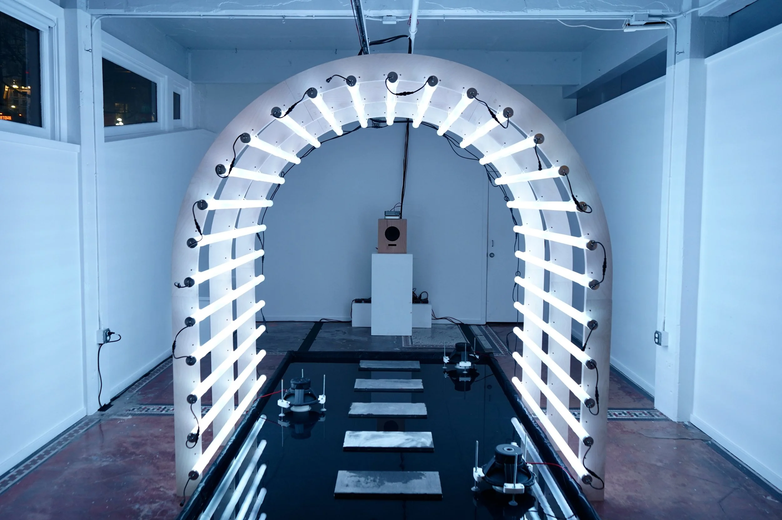 Undercurrent turns sound, light, and reflection into something you can feel. A shallow pool vibrates with audio, sending ripples through the space. The immersive installation reveals subtle movements often overlooked, inviting viewers to slow down and observe the often invisible forces.